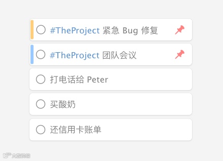 轻量级的任务列表功能,同时通过特殊语法提供 #标签、重要程度、快速置顶等功能。