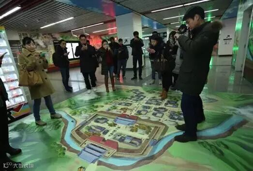 途经现场的乘客可利用手机对准墙面或地面上的巨幅朝阳门手绘图拍照,利用AR技术唤醒老城门,并与其“零距离”互动。此次复原行动再现了老北京当年的民俗生活,让体验者能充分感受老城门的历史文化。