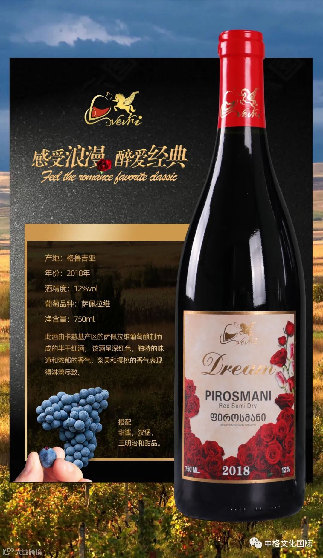 由精选Saperavi葡萄酿制而成,酒体饱满。它很好地散发出萨佩拉维(Saperavi)葡萄的香气。