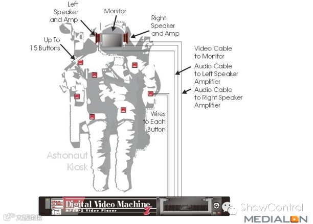 在进一步的完善中,表演控制的形式越来越多样化。简单的如国土资源厅的模型摆放,可以透过它看到城市的规划和展示。再复杂一点,吸引眼球一点的如太空人模型,在其宇航服上设置很多按钮,同时在某个位置设置显示系统,观众可以触摸模型,以此来诱发更多观众参与互动。这种情况下,观众的参与心理就更强了,展示的效果也会大大提高。展览的技术继而发展起来,展示者和设计者开始进一步发掘创意空间,从如何展览、展示、让观众参与互动并激发兴趣逐渐深入,此时整个系统也变得越来越复杂、庞大,这时就需要有一些展示与表演设计的策划师和导演来共同策划完成,也越发需要一套功能强大的系统助其实现这种或恢弘的展览策划,这套系统就是Show Control——表演控制系统。虽然它需要处理复杂的系统和场景,但它本身并不复杂,就只是一台视频播放器,但这种系统极其可靠,因为它储存在一个专业的展览控制系统的设备里面。单看表演控制系统,可能非常简单,缺少科技感,但在它背后支撑的是庞大的工程、强大的导演团队,创意这个演出的过程中需要很多的人来支持。