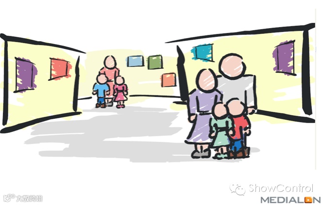 Show Control与传统的中央控制系统有非常大的区别,但也有相同点。我们可以从以下三个核心含义来理解。首先,Show Control即是控制系统也是同步系统,它不但要控制所有的子元素、设备、子系统(包括音频系统、显示系统、灯光照明系统等等),还要把它们有效地同步起来。除此之外,Show Control还要为运维或操作提供一个有效的控制界面,这种控制界面可以是触摸屏、按钮、按键、计算机、鼠标等,作为运维操作间的控制系统、操作界面。同时,Show Control还必须给公众提供互动的用户界面,除了运维与操作的控制管理之外,还应需要让用户参与系统中来,实现展览展示的交互性。也就是说,Show Control不仅是一个控制系统、同步系统,其还是一个互动系统。