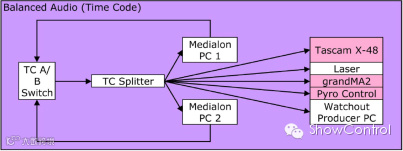 虽然对于一场大型演出来说,会涉及到很多的设备与系统,但如今,对整个表演的控制与管理可以通过一台设备来完成,如通过MEDIALON表演控制系统设备。MEDIALON表演控制系统可以基于时间轴的概念,支持程序串联,支持TCP/IP底层协议,对于里面的很多元素,如音响、灯光、视频等,只需鼠标点击拖动即可将播放指令逐条发送出去。