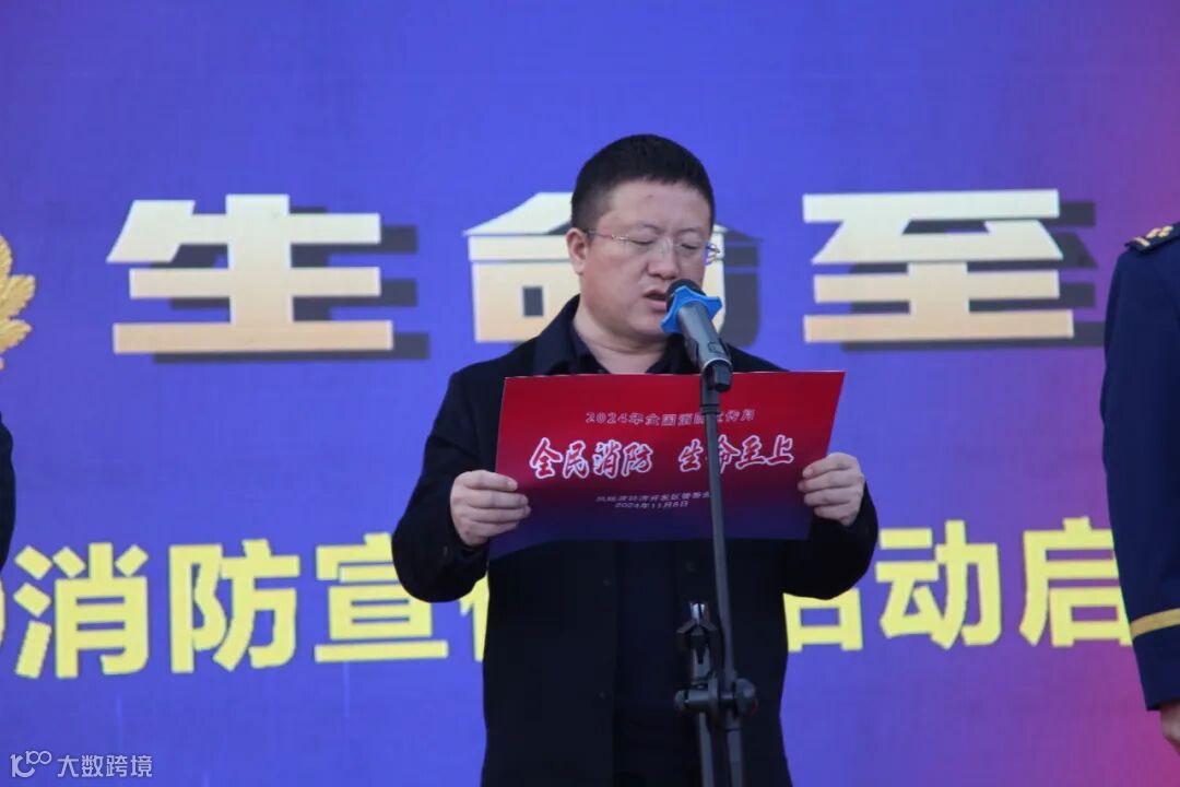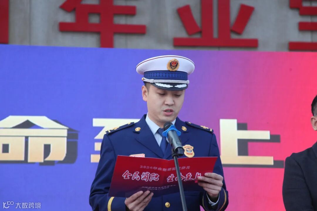风陵渡经济开发区消防救援大队大队长冯嘉琛宣读《2024年“119消防宣传月”活动实施方案》