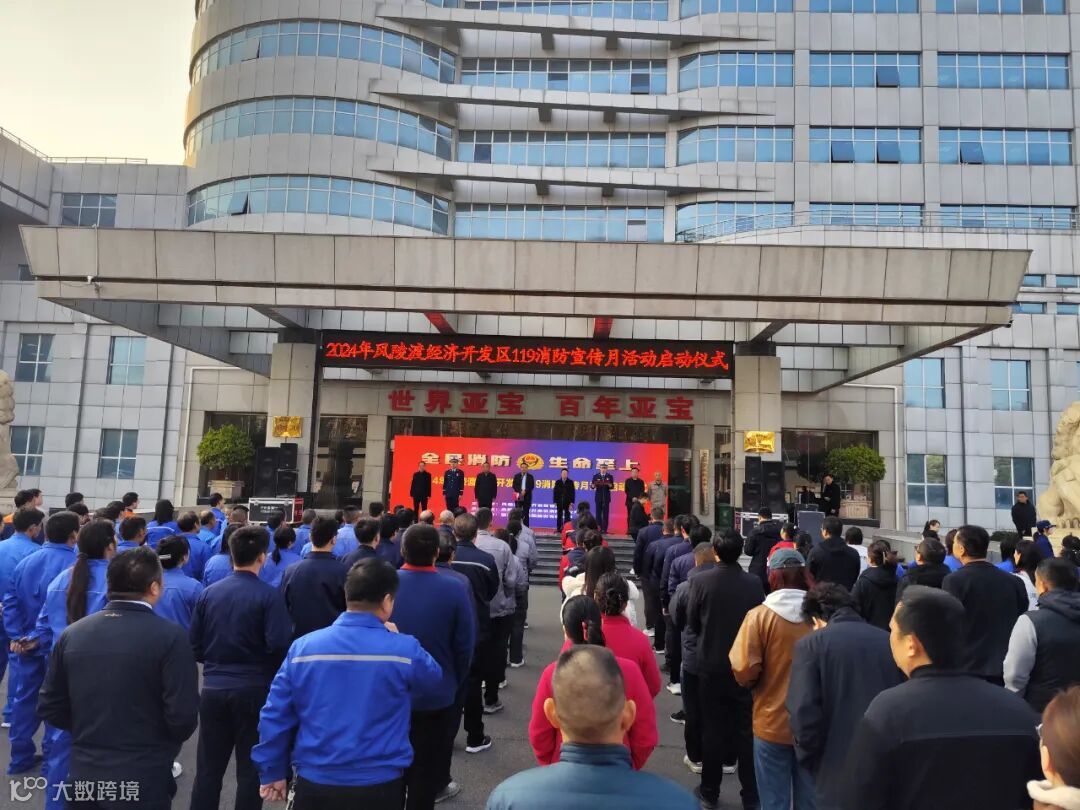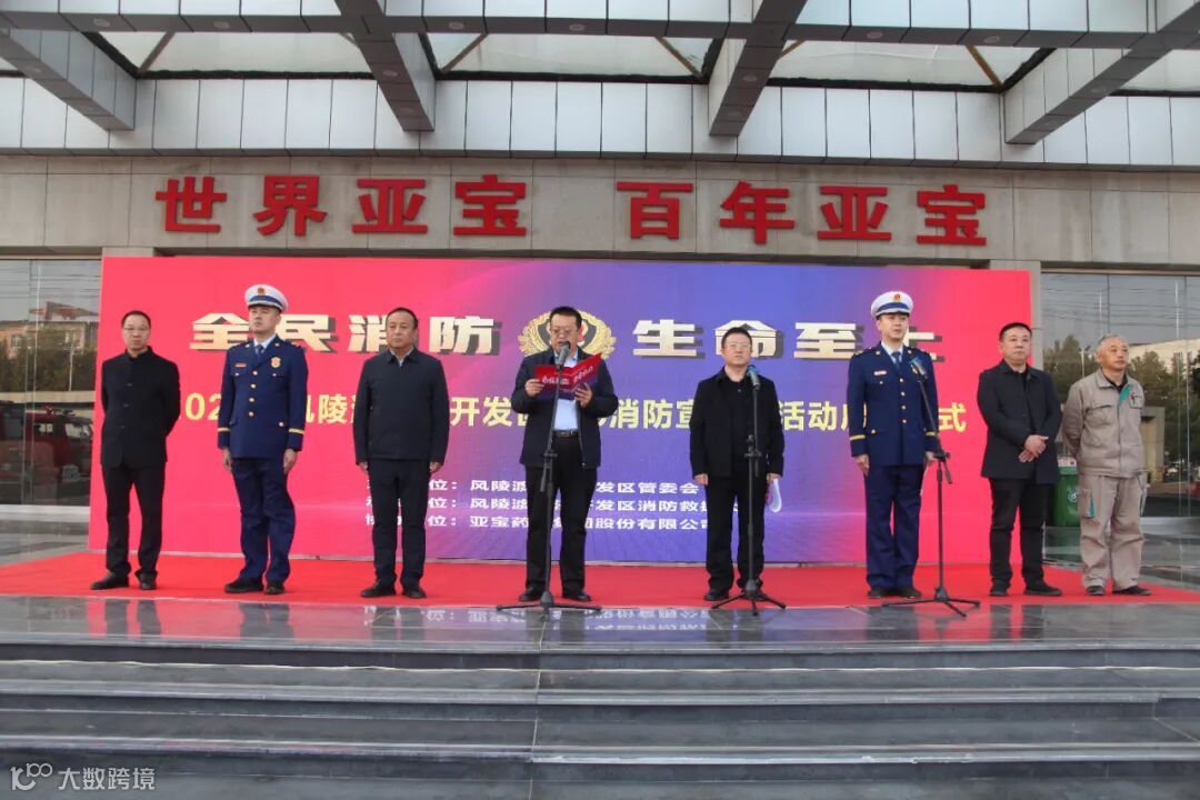 11月8日,由风陵渡经济开发区管委会主办,风陵渡经济开发区消防救援大队承办,亚宝药业集团协办的2024年“119消防宣传月”活动启动仪式在风陵渡工业园举办。风陵渡经济开发区管委会副主任蔡军龙、风陵渡经济开发区管委会副主任秦晨林、风陵渡经济开发区管委会副主任景放,风陵渡经济开发区消防救援大队大队长冯嘉琛、教导员赵强,亚宝药业集团党委书记许振江,风陵渡工业园总经理李建国出席。蔡军龙宣布风陵渡经济开发区2024年“119消防宣传月”活动正式启动。秦晨林主持启动仪式。风陵渡经济开发区各消防安全重点单位、企业消防安全责任人及管理人,企业员工代表、企业专职消防队员等共计200余人参加。