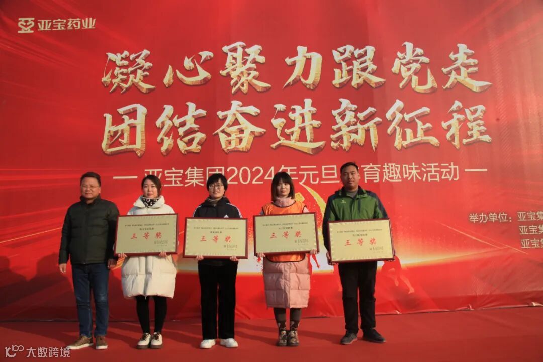 为进一步丰富职工业余文化生活,发扬团结协作、敢于拼搏的团队精神,12月26日,亚宝药业集团在芮城工业园举办“凝心聚力跟党走,团结奋进新征程”2024迎元旦体育趣味活动。来自芮城区域各中心、各分子公司6支代表队228名运动员参加。集团党委书记、监事会主席许振江,监事会监事宁会强,集团副总裁梁军,芮城区域各分子公司总经理应邀出席。此次活动由亚宝集团党委、亚宝集团工会、亚宝集团关工委主办。