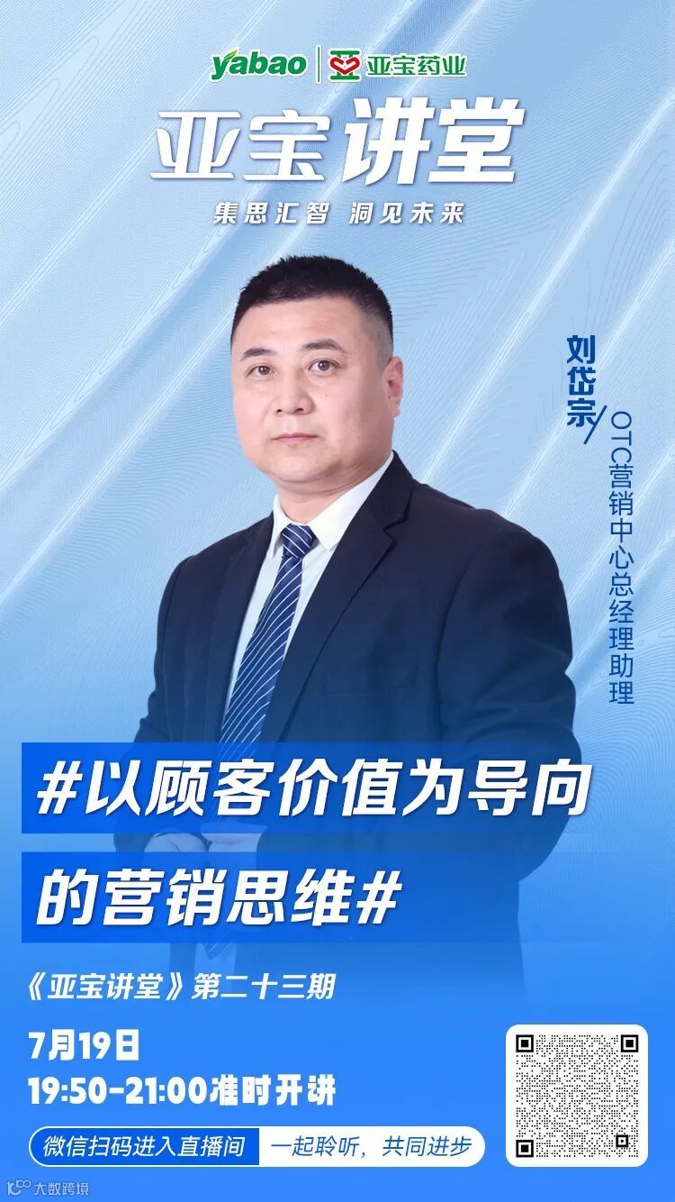 今晚8点,《亚宝讲堂》第二十三期特邀OTC营销中心总经理助理刘岱宗作为主讲嘉宾,为大家带来一堂《以顾客价值为导向的营销思维》精彩课程。让我们一起聆听,共同进步!