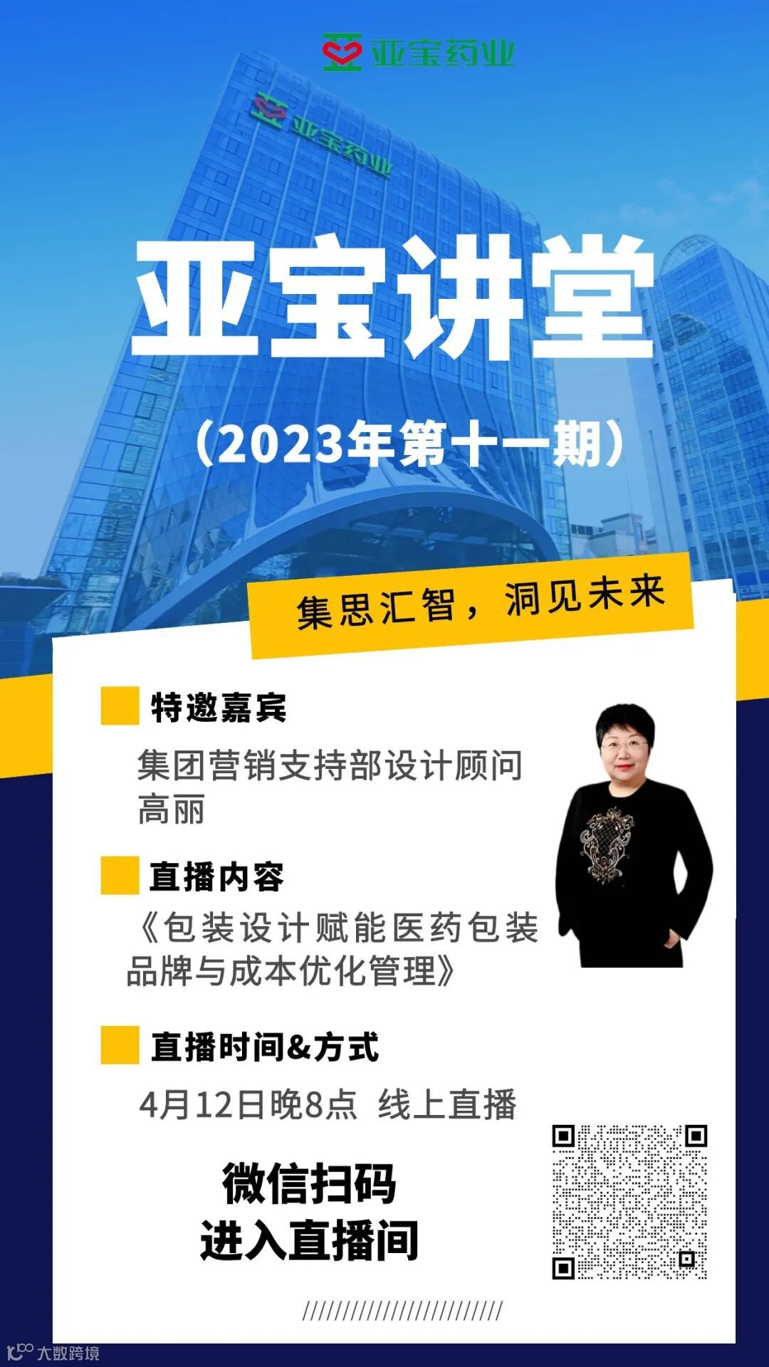 今晚8点,《亚宝讲堂》第十一期特邀集团营销支持部设计顾问高丽作为主讲嘉宾,为大家带来一堂《包装设计赋能医药包装品牌与成本优化管理》精彩课程。让我们一起聆听,共同进步!