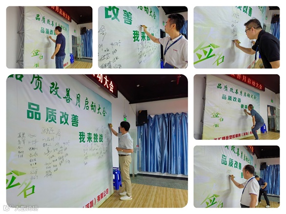 各参会人员在“品质改善签名墙”签下自己的名字,并签署《品质承诺书》,郑重承诺严格执行公司制定的质量保证措施;强化内部质量管理意识,全员贯彻“谁制造谁负责”、“谁管理谁负责”和“过手有责”的原则,加强员工质量培训,持续提高员工技能水平,这是一种仪式,是一种纪念,更是一种责任与担当!