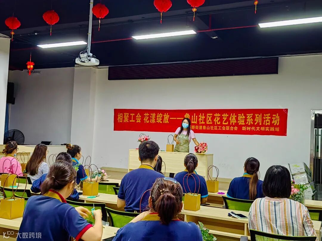 为丰富和活跃广大员工的文化生活,4月18日在员工服务中心举办了以“相聚工会 花漾绽放--象山社区工联会花艺体验系列活动”为主题的花艺沙龙;通过体验花艺沙龙,感受插花的乐趣,用花卉点缀生活,增添生活情趣,进一步缓解日常紧张的工作情绪和生活压力,后续能以饱满的热情继续投入工作。