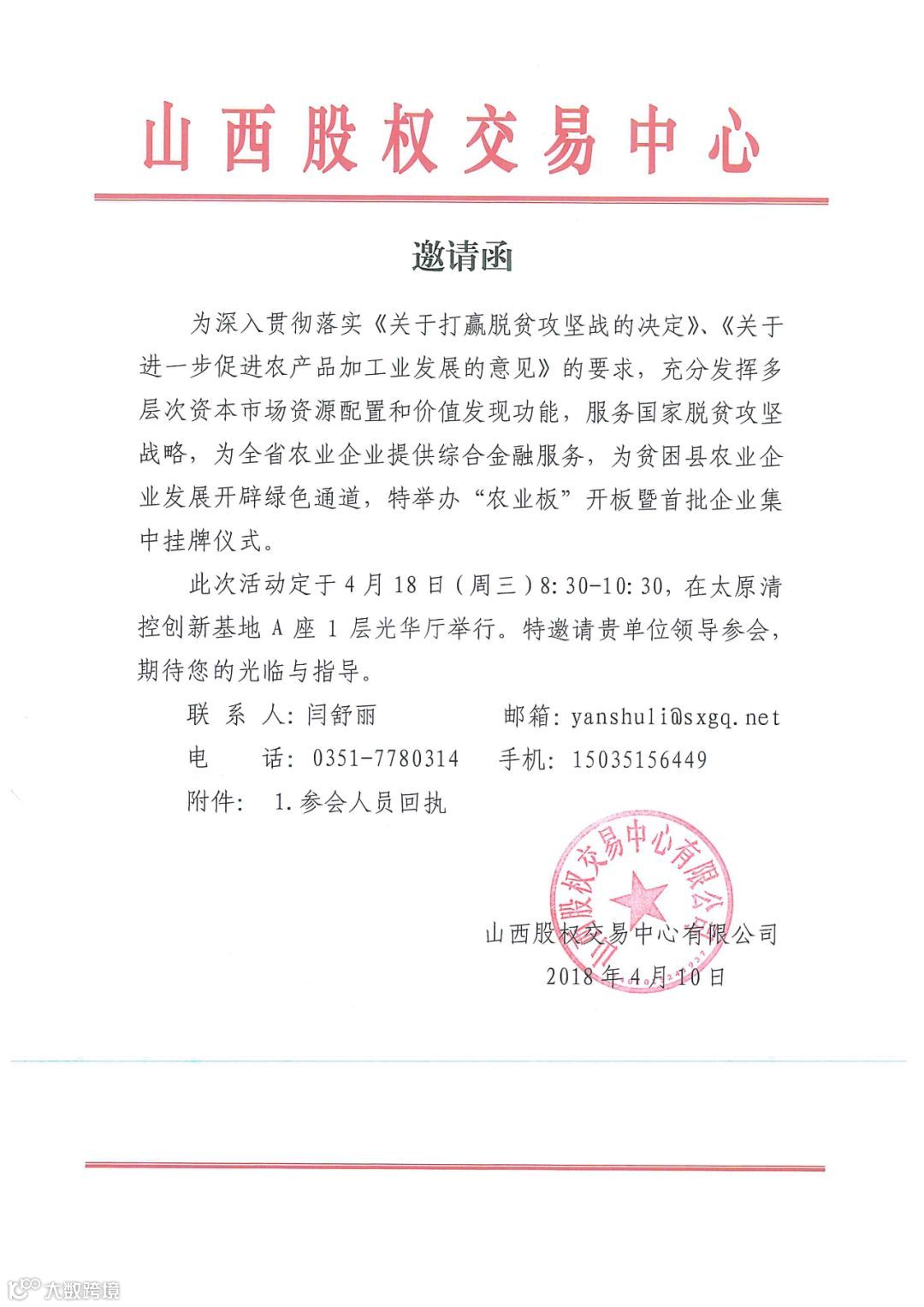 山西股权交易中心“农业板”开板暨首批农业企业集中挂牌仪式邀请函