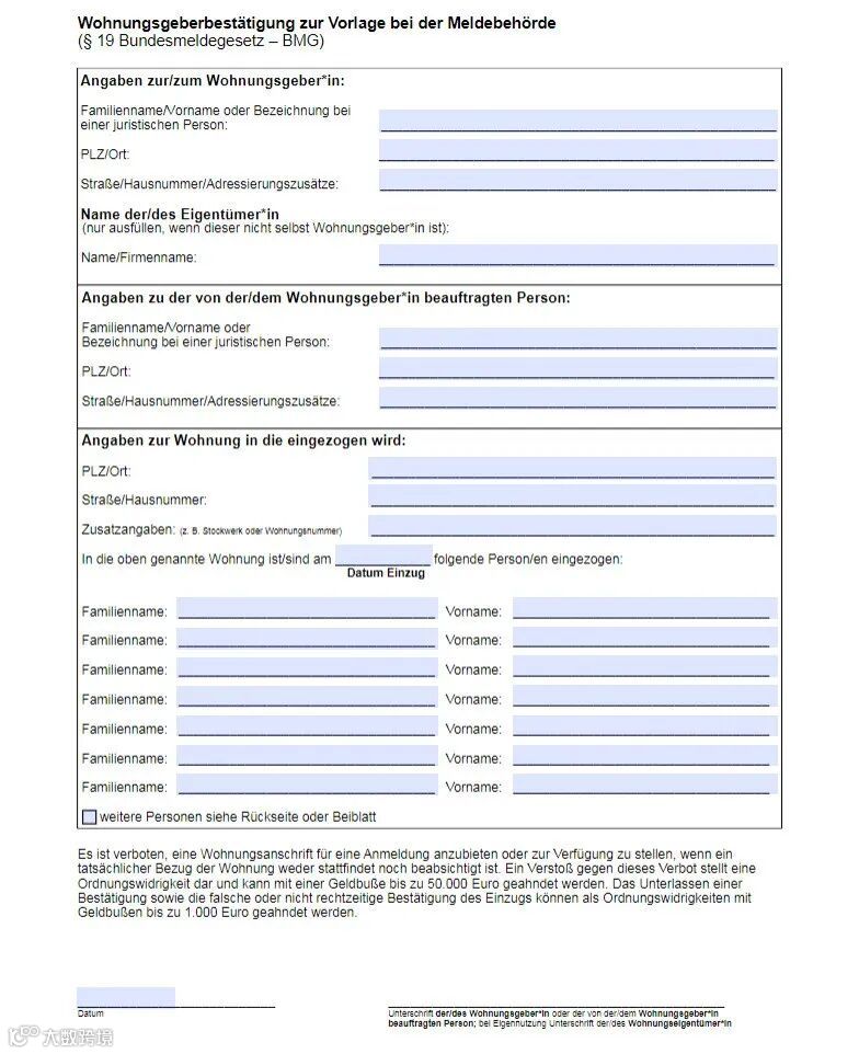 根据§17-Bundesmeldegesetz (BMG) 规定:所有在德国长期或短期(超过一定期限,如三个月)居留的人必须在当地居民登记处(Bürgeramt或Einwohnermeldeamt)进行登记。