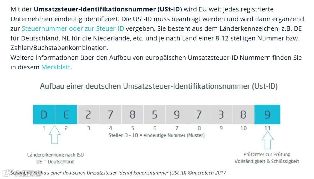 一般以两个字母开头(国别缩写)+8-12位数字,如德国的欧盟增值税号形式是DE123456789,该税号固定不变,需向联邦税务局(Bundeszentralamt für Steuern)提交申请。