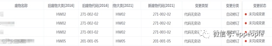 人工变更:2016版废物代码未明确变更为哪个2021版废物代码,需要企业手动核对并确认危废变更信息。