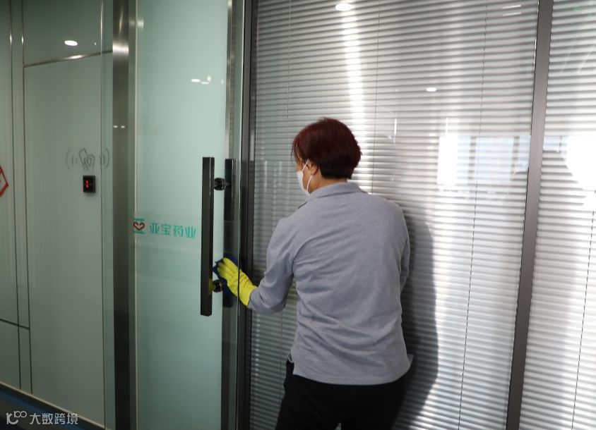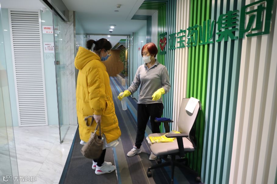 公司的玻璃门一打开,迎接你的首先是全副武装的保洁阿姨,以及她手中的消毒喷瓶。只要外出归来,都要立定站好,经过消毒喷剂的洗礼后才能进入公司。