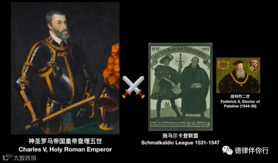 随后从1529年开始,德皇等一众天主教诸侯与新教诸侯矛盾激化,双方互相发表文章驳斥对方,并最终上升到武力对抗的层面。德国北部,中部、南部的新教诸侯组成施马加登联盟(League of Schmalkalden),天主教诸侯也结成纽伦堡联盟(Leagueof Nuremberg)与之相抗衡。对抗以1552年路德派诸侯的胜利结束,路德宗在1555年以合法教会被认可,形成了政权压倒教权的局面。