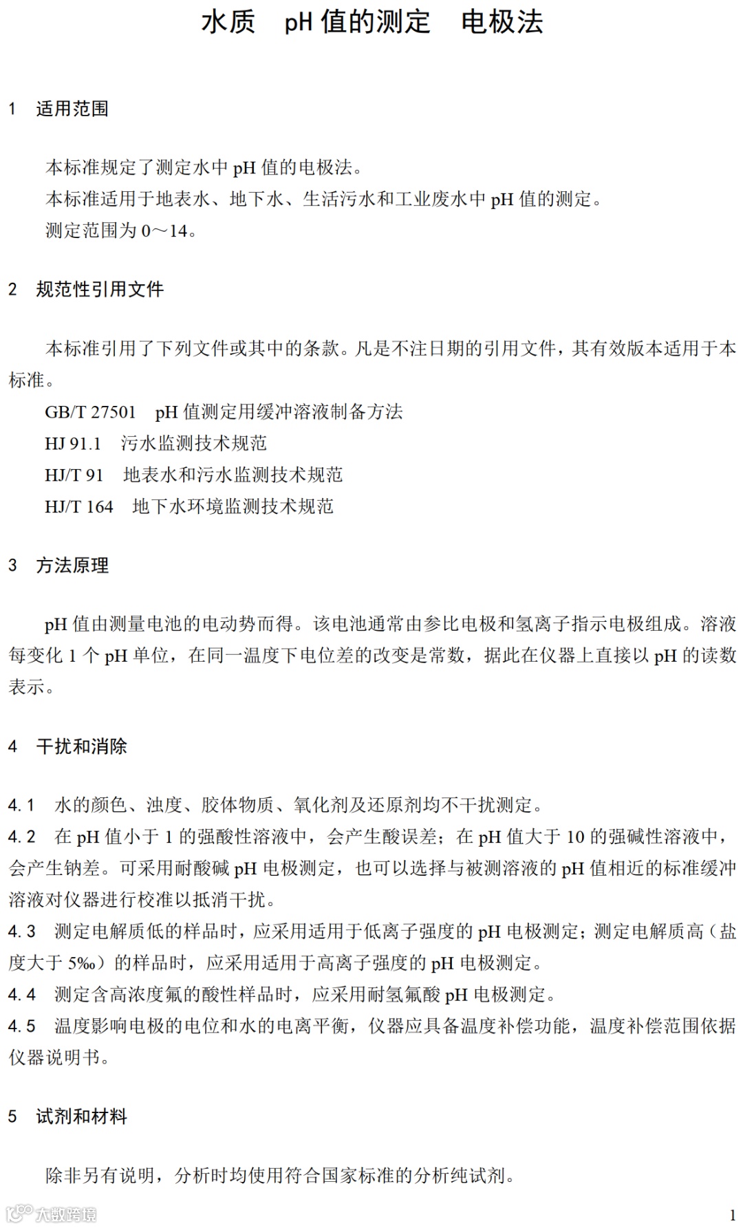 关于发布《水质 pH值的测定 电极法》国家环境保护标准的公告