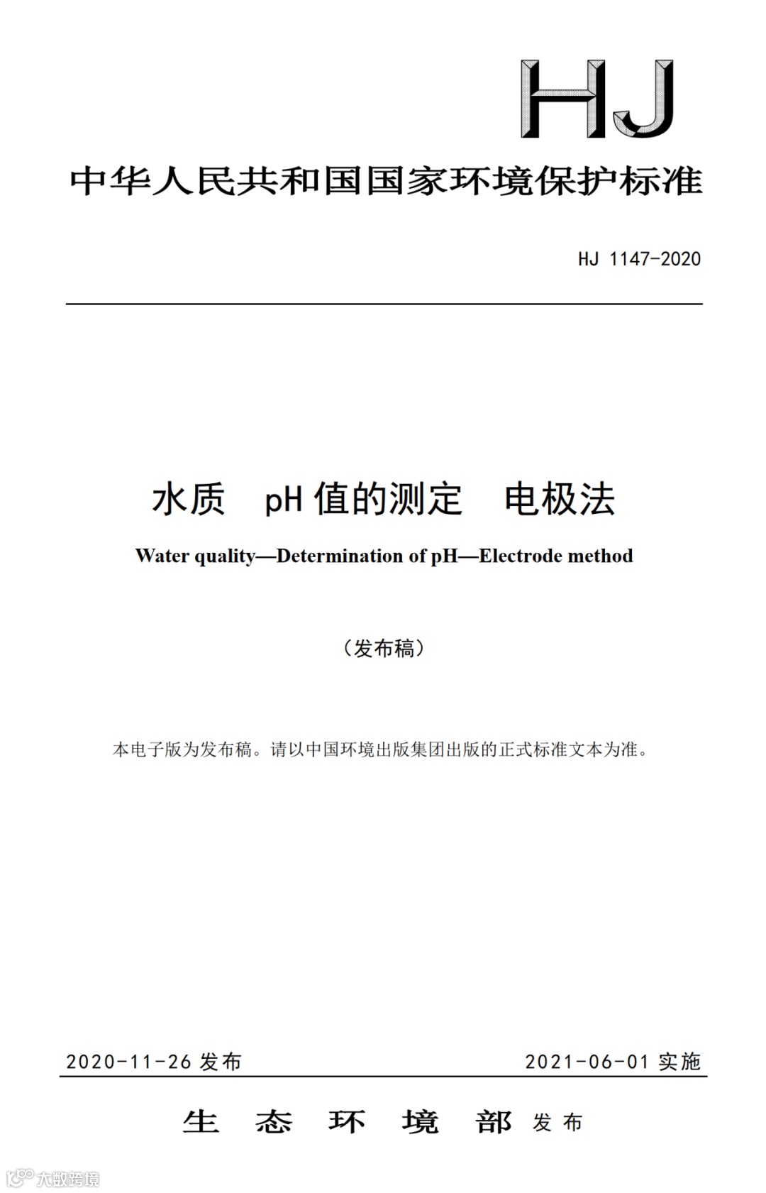 《水质 pH值的测定 电极法》(HJ 1147-2020)