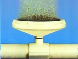 散流曝气,倒伞形状,氧利用率大约8%-12%。原理类似旋流,气流撞向锯齿进行切割,但因为气流分散,冲击力弱,切割力度弱,气泡较大,氧利用率较低,能耗高又无搅拌作用,使用的越来越少。