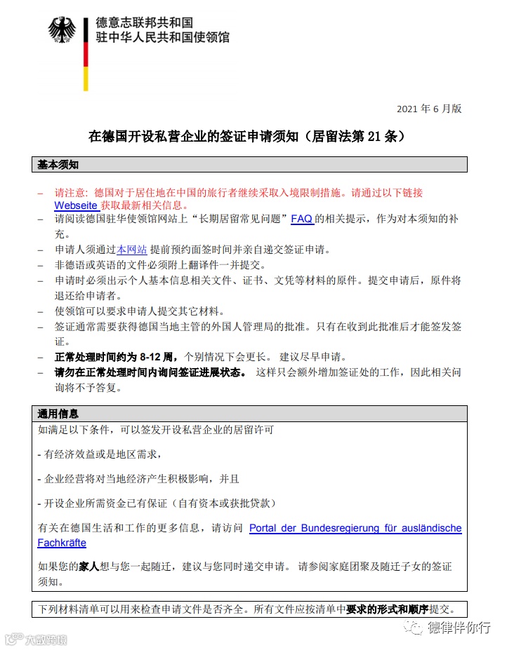 中国的企业家以独立经营者身份在德国当地管理公司时必须持有以自营型工作为目的的居留许可。