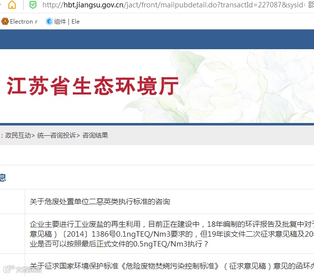 | 标题 | 关于危废处置单位二惡英类执行标准的咨询 |