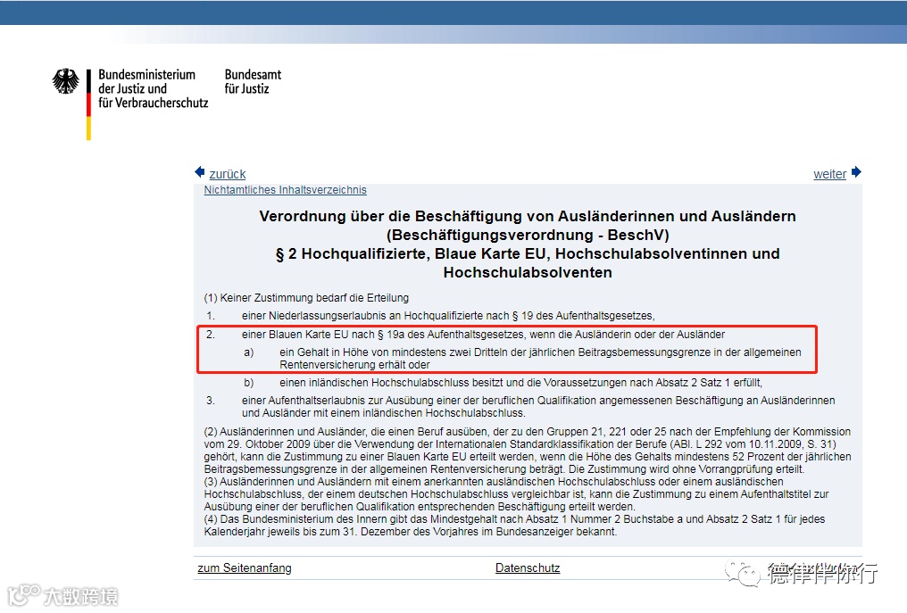 首先给大家说一个小科普,关于德国蓝卡申请者的薪资标准在《就业条例》BeschV中是这样规定的:蓝卡持有者作为高收入人群,年收入需要达到缴纳养老保险年最高收入限额的2/3。