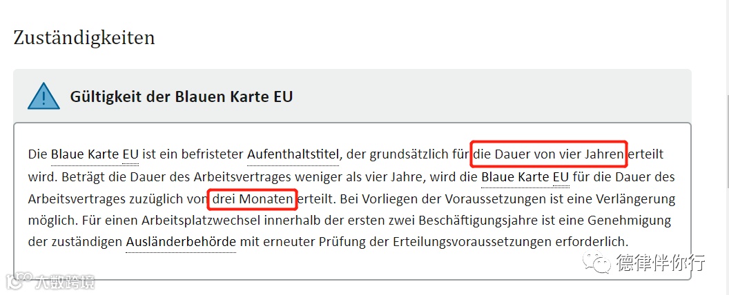 在德国移民局的网站上,除了更新了今年的蓝卡薪资标准,还给蓝卡,一种有效期居留证明,所具有的居留时间做了明显的说明: