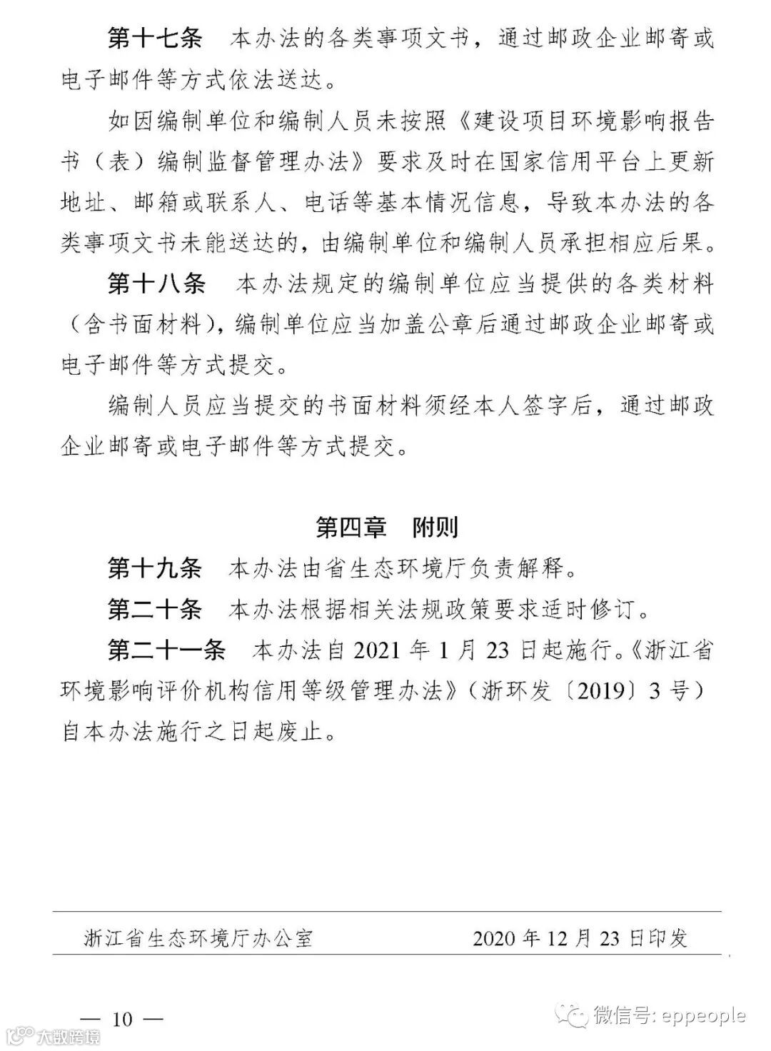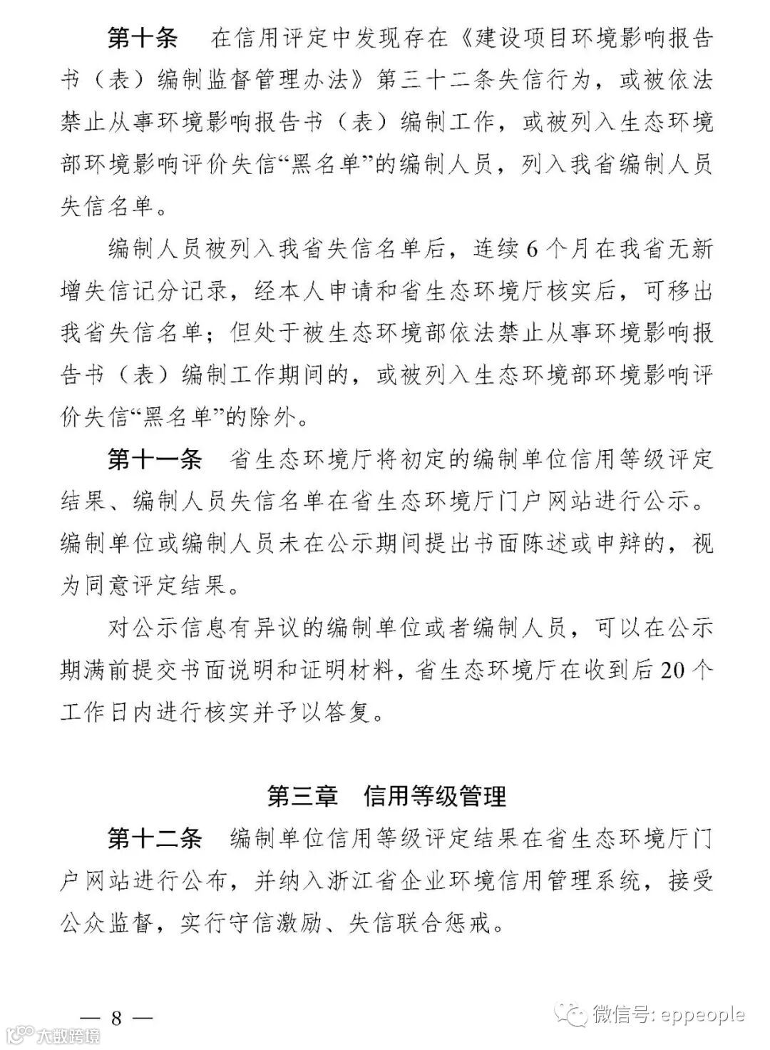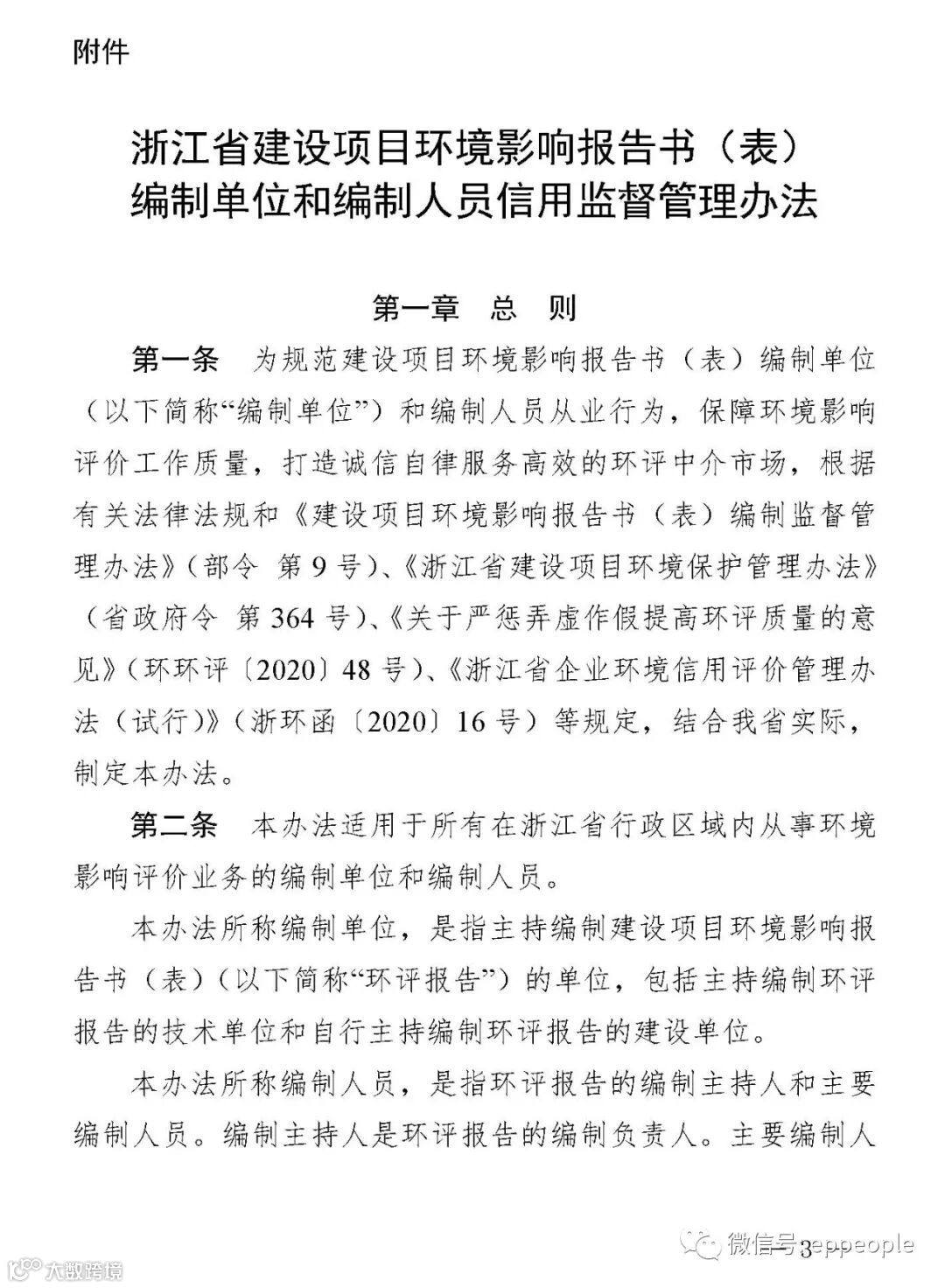 浙江省生态环境厅关于印发《浙江省建设项目环境影响报告书(表)编制单位和编制人员信用监督管理办法》的通知
