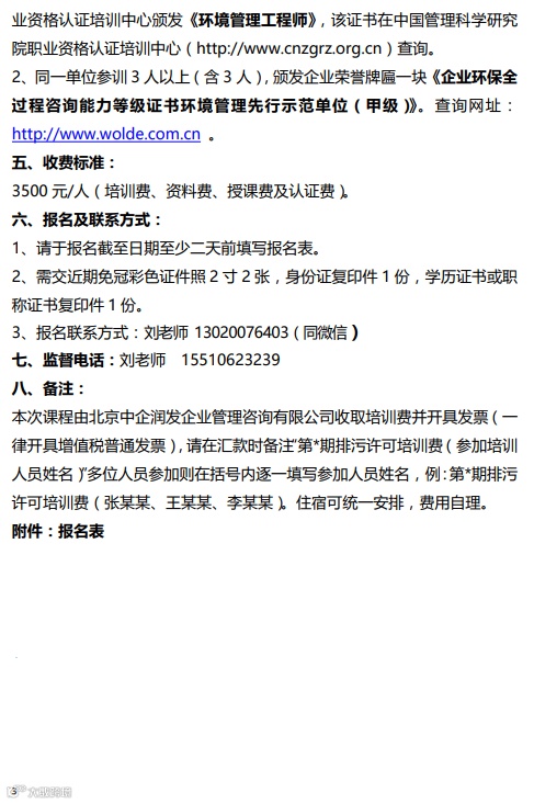红头文件2:排污许可”一证式“管理专业化人才培训暨环境管理工程师培训班的通知