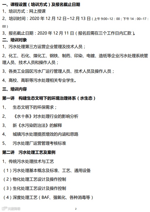 红头文件3:污水处理运营管理精讲培训班的通知