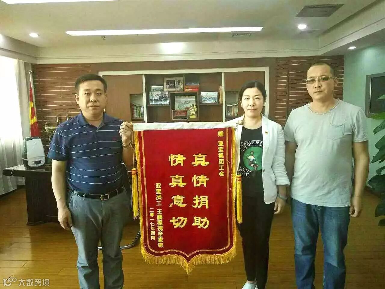 “亚宝爱心基金会”扶助危困倒悬之急,帮助员工度过了生活中的困难,体现了“亚宝一家人”的文化理念,体现了我们企业的人文关怀。