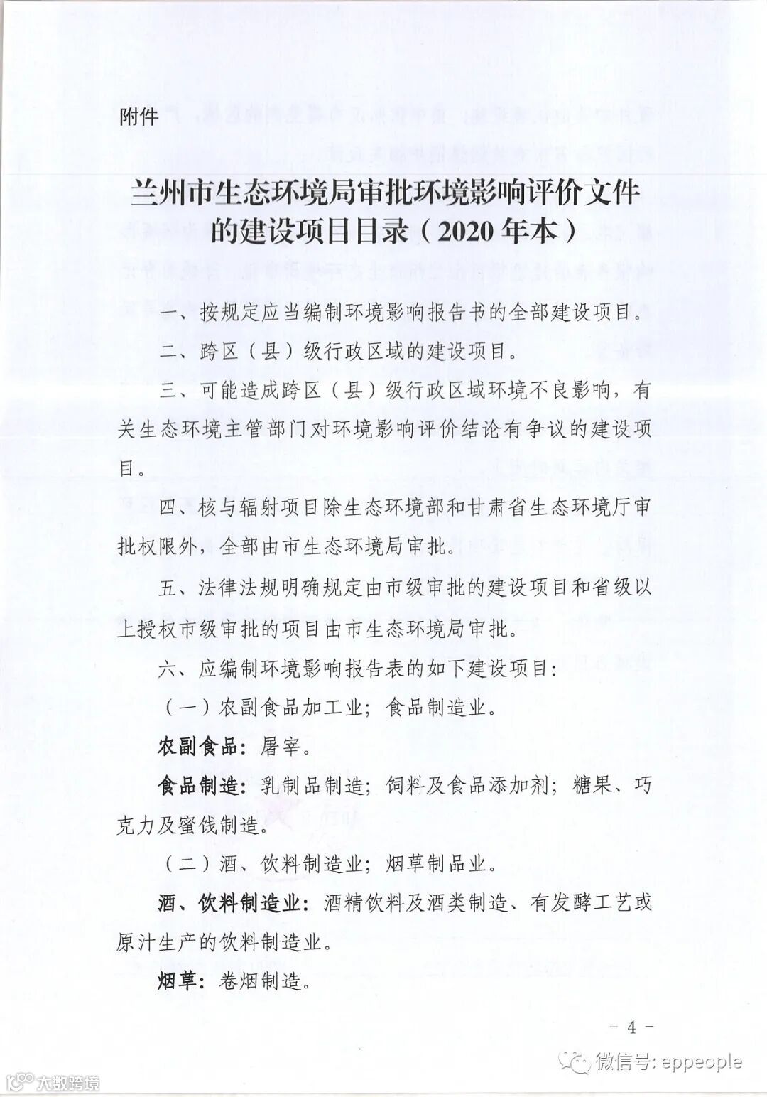 兰州市生态环境局关于印发《兰州市生态环境局审批环境影响评价文件的建设项目目录(2020年本)》的通知