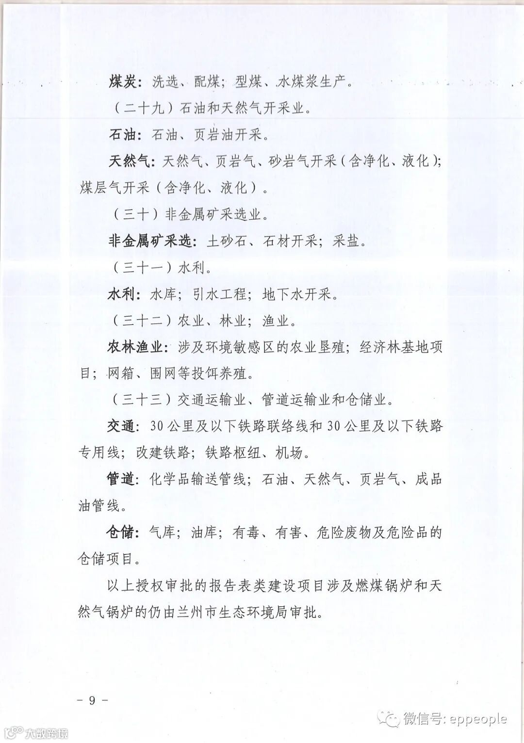 五、《建设项目环境影响评价分类管理名录》调整后,原《名录》中编制环境影响报告书的建设项目降级为环境影响报告表的建设项目由兰州市生态环境局审批。降级为登记表的由各区(县)生态环境分局和高新区环保局负责指导做好备案。