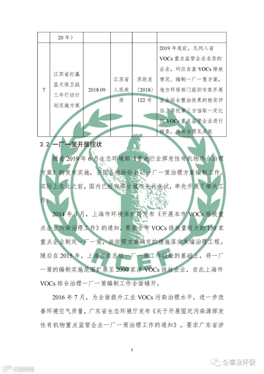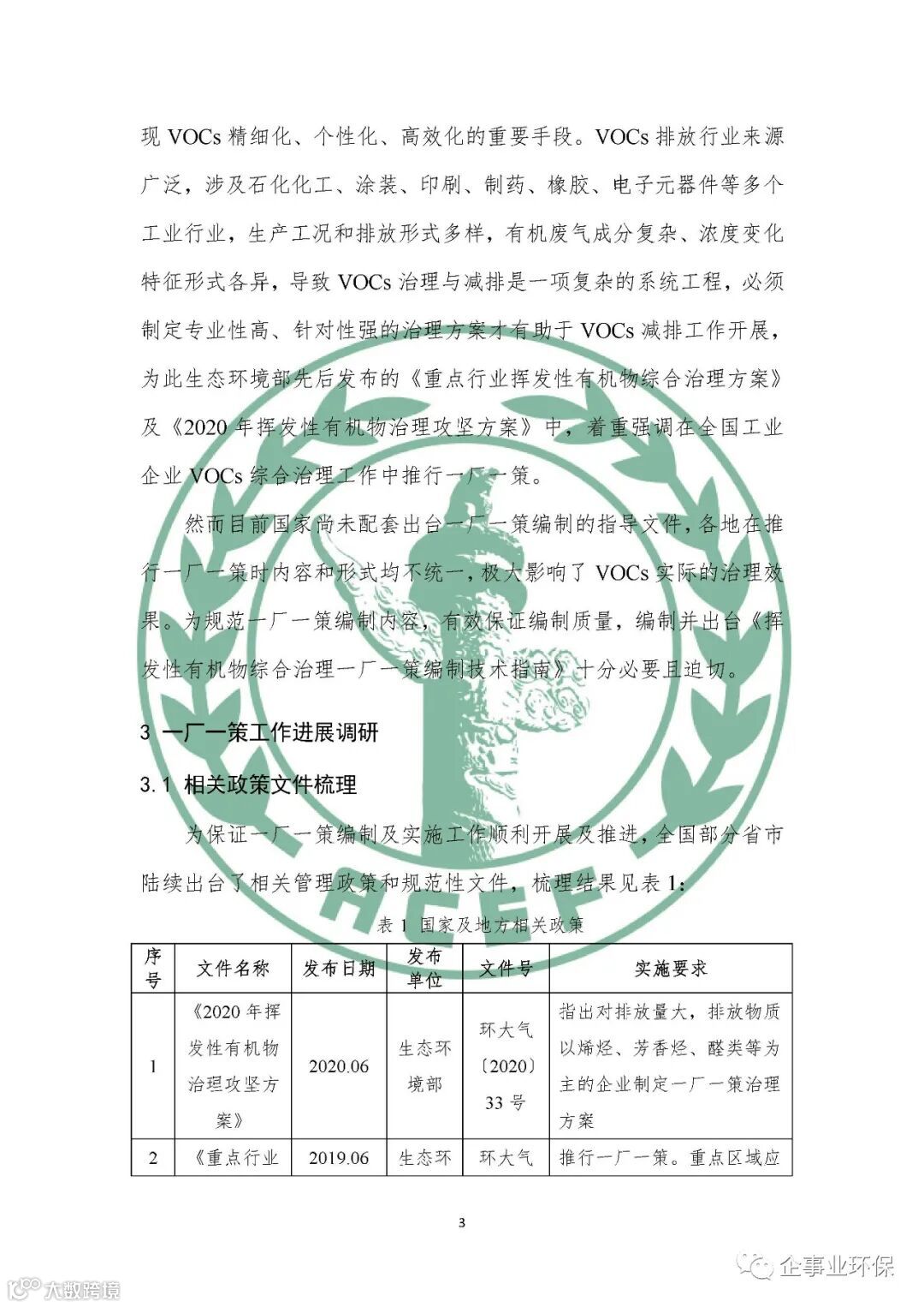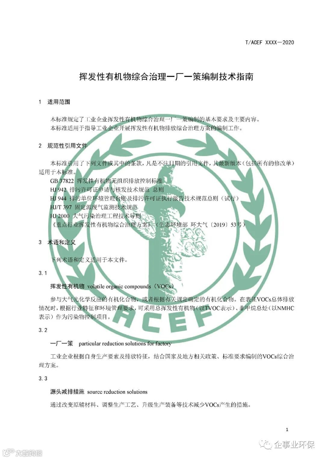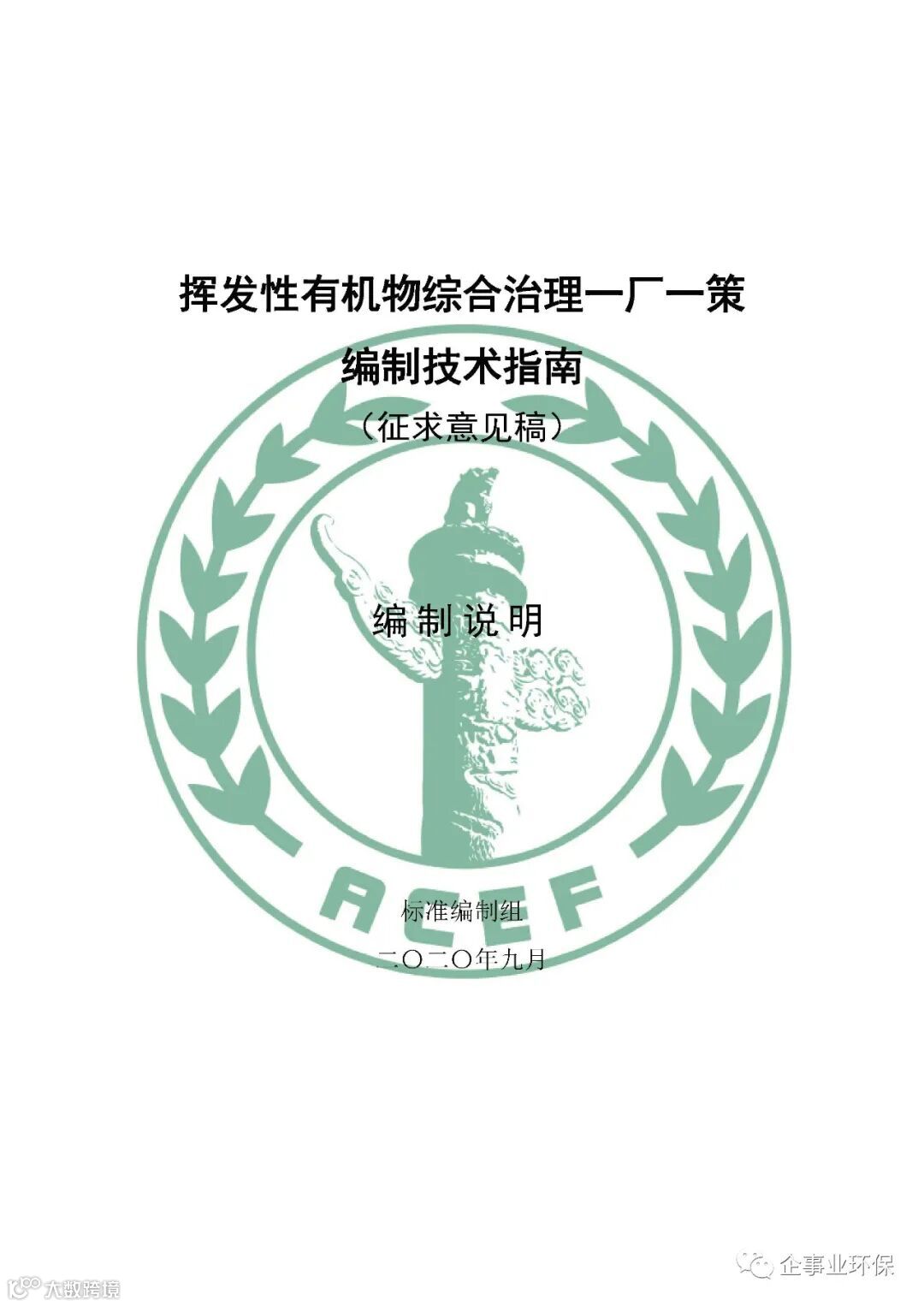 1、《挥发性有机物综合治理一厂一策编制技术指南(征求意见稿)》