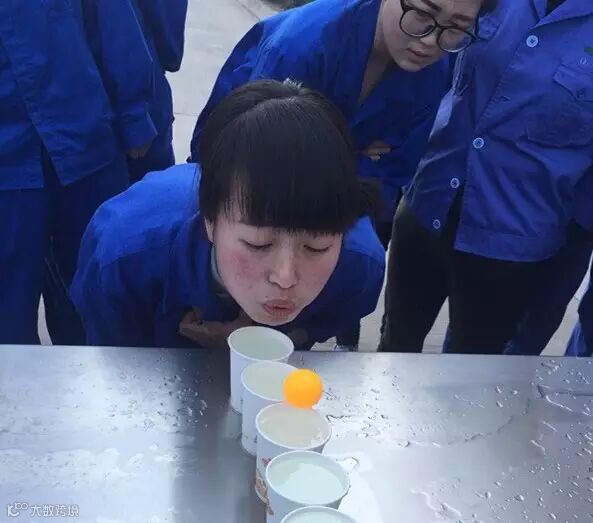 在吹乒乓球比赛中,选手们脸上虽然溅满了冰凉的水滴,但丝毫没有影响到他们的发挥水平,“噗”“噗”“噗”就把乒乓球吹到了终点。