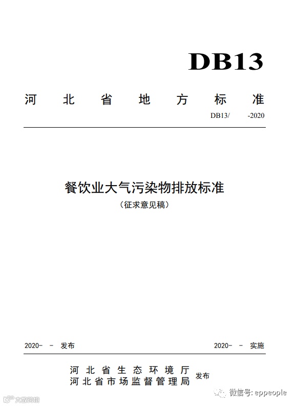 为贯彻《中华人民共和国环境保护法》,促进环境空气质量改善,保障人体健康,河北省生态环境厅组织起草了《餐饮业大气污染物排放标准(征求意见稿)》。现征求你单位意见,请研究提出意见,并于2020年10月30日前反馈我厅(电子文档请同时发送至电子邮箱)。标准征求意见稿和编制说明可登录我厅网站(http://hbepb.hebei.gov.cn/)“意见征集”栏目检索查阅。