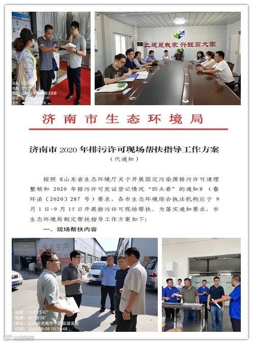 8月31日印发了《济南市2020年排污许可现场帮扶指导工作方案》,市生态环境局及各分局分别建立排污许可现场帮扶指导小组,小组由排污许可管理人员及执法部门有关人员组成;9月1日开始,对已发证登记、下达限期整改及特殊情形类排污单位开展现场帮扶指导,重点帮扶指导排污单位是否按照规定管理层级管理、是否按规定进行整改,排污许可证载明内容是否与实际一致,特殊情形类单位现场是否属实。