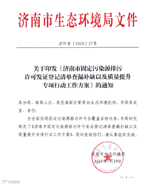 近日,山东省济南市在完成2020年固定污染源排污许可发证登记工作后,立即开展工作质量“回头看”工作,7月29日印发了《济南市固定污染源排污许可发证登记清单查漏补缺以及质量提升专项行动工作方案》,进一步查漏补缺,开展自查和抽查。