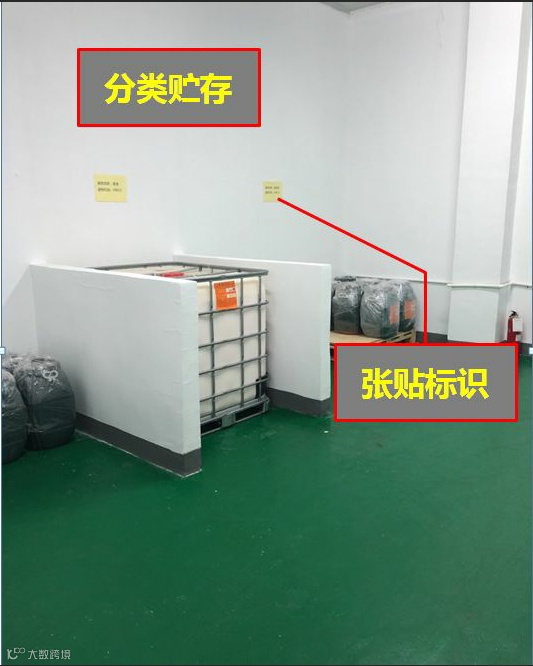 “四防”:防风、防雨、防晒及防渗漏。防风必须有实体墙;防雨、防晒必须有屋顶且具备一定的隔热避光能力;防渗漏,一般需要地面刷环氧地坪及设置围堰、地沟,量少的情况下也可以用托盘放置在危险废物下方。