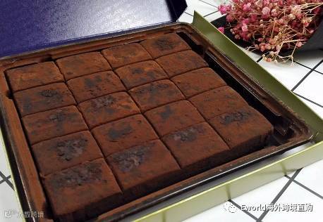 从外形上来看,它被匀切成了若干块,上面撒满一层薄薄的可可粉,远看就像是被披上了一层薄薄的小“被子”~