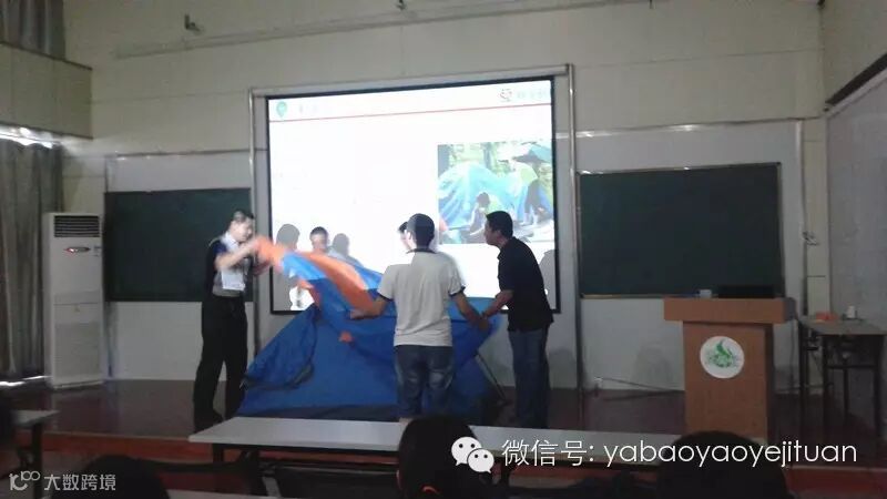 陈高辉从事亚宝拓展培训基地的教官工作已6年,先后带领学员们参加各种场地拓展、野外拉练、野外生存活动达20余次,拥有丰富的实践经验。陈老师结合自己多年的户外运动经验,理论联系实际,给大家讲解了野外生存的基本常识、意外营救以及户外运动的注意事项。