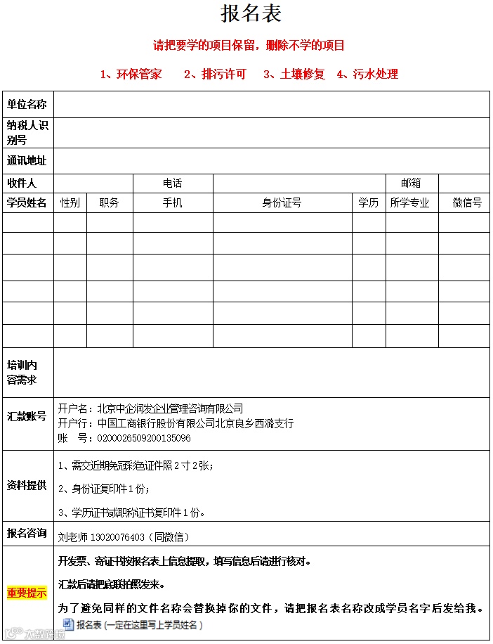 1、请于报名截至日期至少二天前填写报名表。