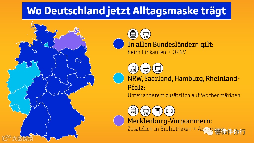 根据德国政府的决议,本周起(4月27日),16个联邦州就将全体执行“口罩强制令”。