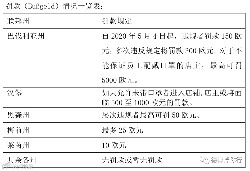 从严格意义上说,德国并没有颁布全国范围内统一的佩戴口罩法案,联邦只是“强烈建议”公民在公共汽车、列车和商场等公共场合戴所谓的日常口罩。在国内仍有争议,各州的反应也不一,有的州为了有效落实设定了罚金:凡违反规定者,都将被处以一定数额的罚款。而更多的州则选择先观察民众反应,不罚款或暂不罚款。