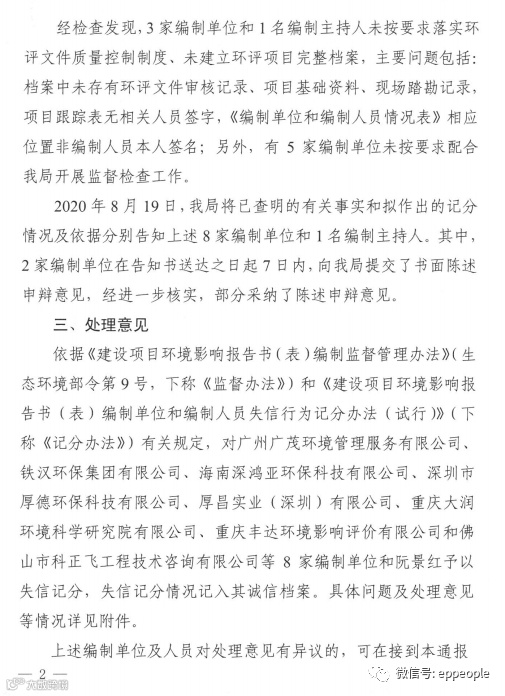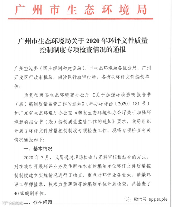 关于20年环评质量控制专项检查的通报:未按要求附具《编制情况表》、冒充签名等