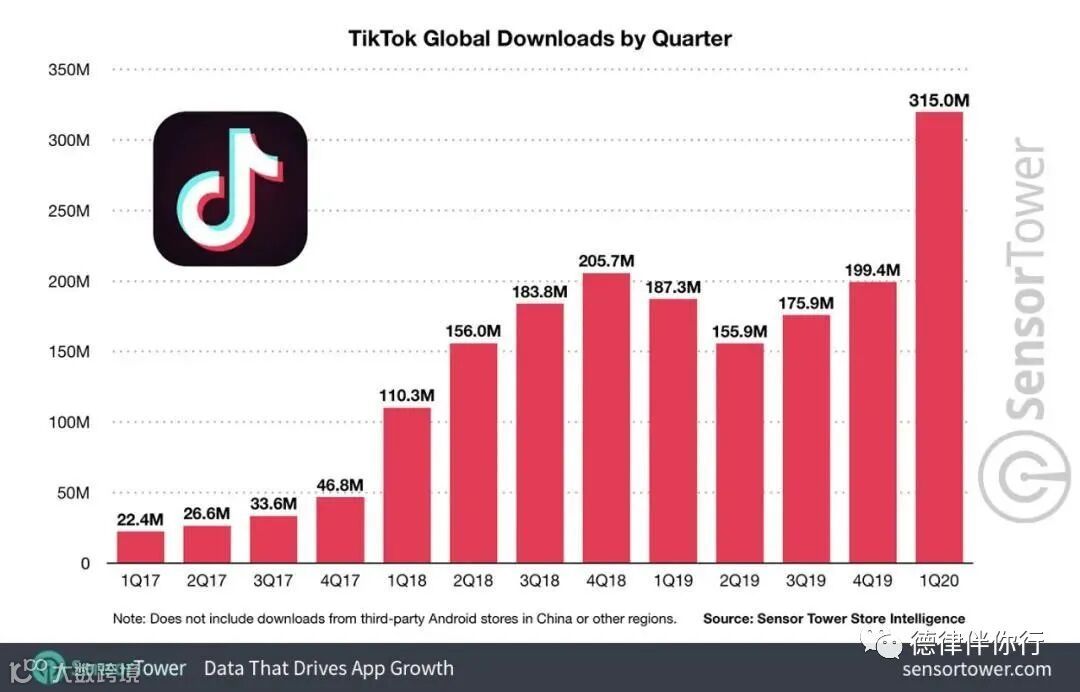 根据Sensor Tower旗下的Store Intelligence平台统计,截至今年5月,TikTok在App Store和Google Play上的全球下载量已经突破20亿次。在美国,TikTok也成为今年最受欢迎的应用之一,累计下载量超过1.65亿次。