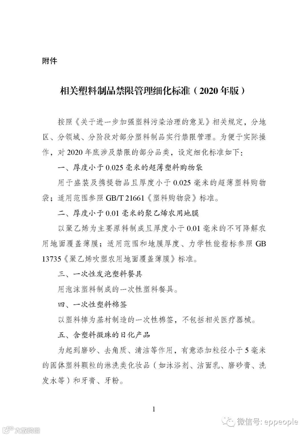 附件:相关塑料制品禁限管理细化标准(2020年版)