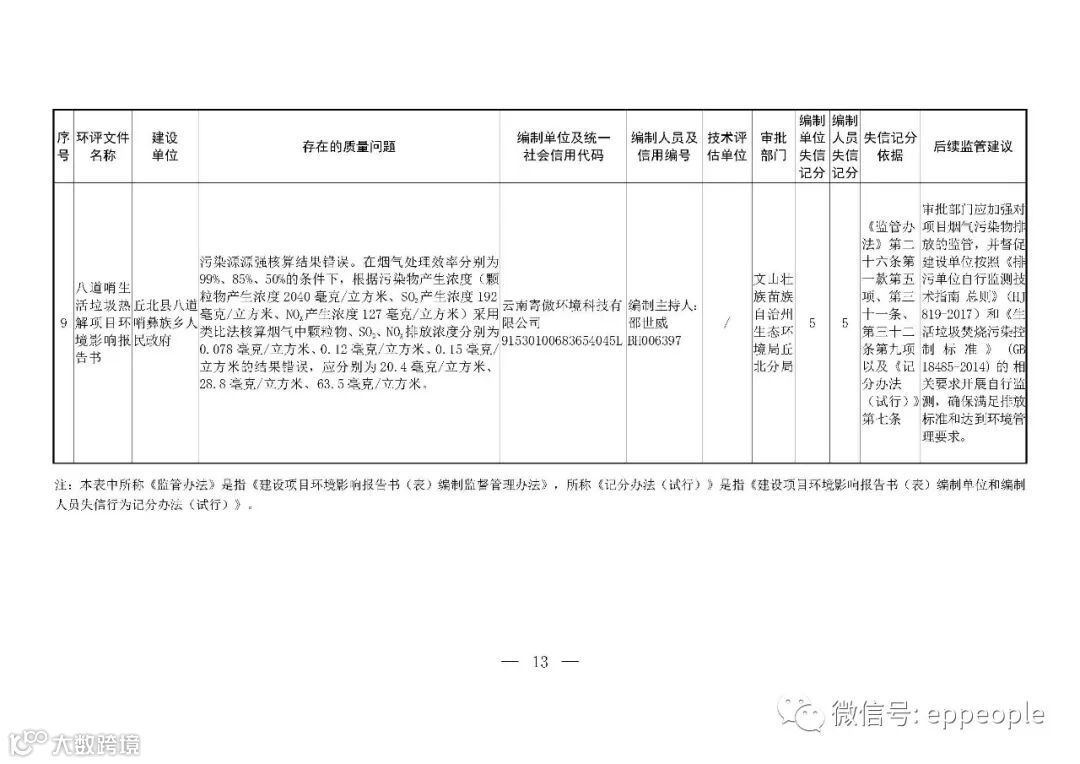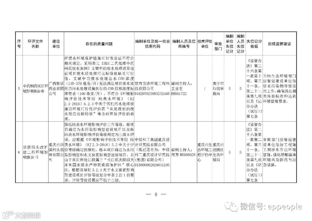 根据《建设项目环境影响报告书(表)编制监督管理办法》及相关配套文件规定,对相关的15家环评文件编制单位及18名编制人员予以通报批评和失信记分,失信记分情况记入其诚信档案;对相关的15家建设单位予以通报批评,并对相关的4家技术评估单位和15个审批部门予以通报。相关单位和人员对处理意见有异议的,可在收到本函之日起60日内向我部申请行政复议,也可在收到本函之日起6个月内依法提起行政诉讼。具体问题及处理意见等情况详见附件1-2。