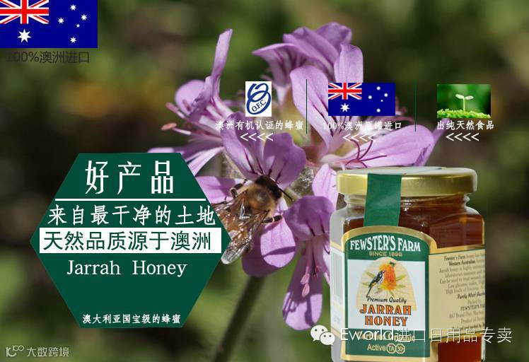 产自澳洲,而且是西澳独有的嘉拉树林。此种树每年开两次花,所以采蜜时间有限,因此产量低,尤其弥足珍贵。