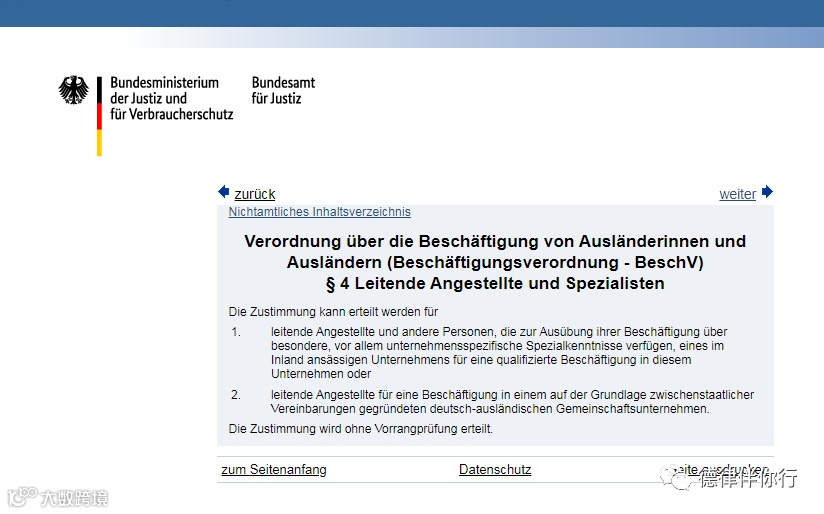 为吸引欧盟境内及海外专业人才流动至德国,除了传统严格的劳工签证,德国《居留法》§18条的实施细则中关于高管人员(Führungskraft)更为宽容的政策规定。体现在申请条件上: