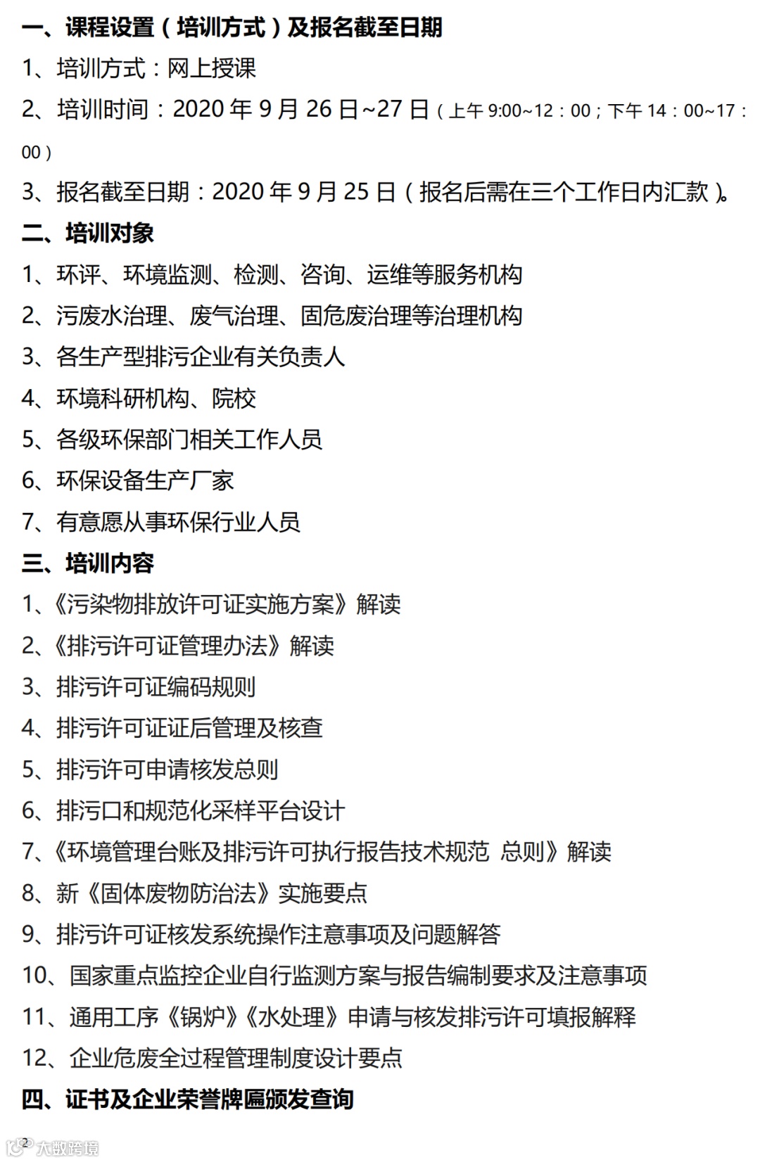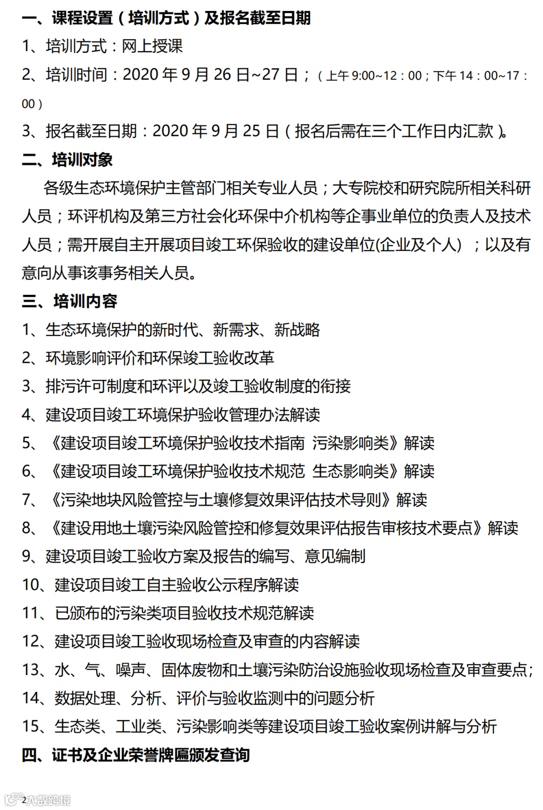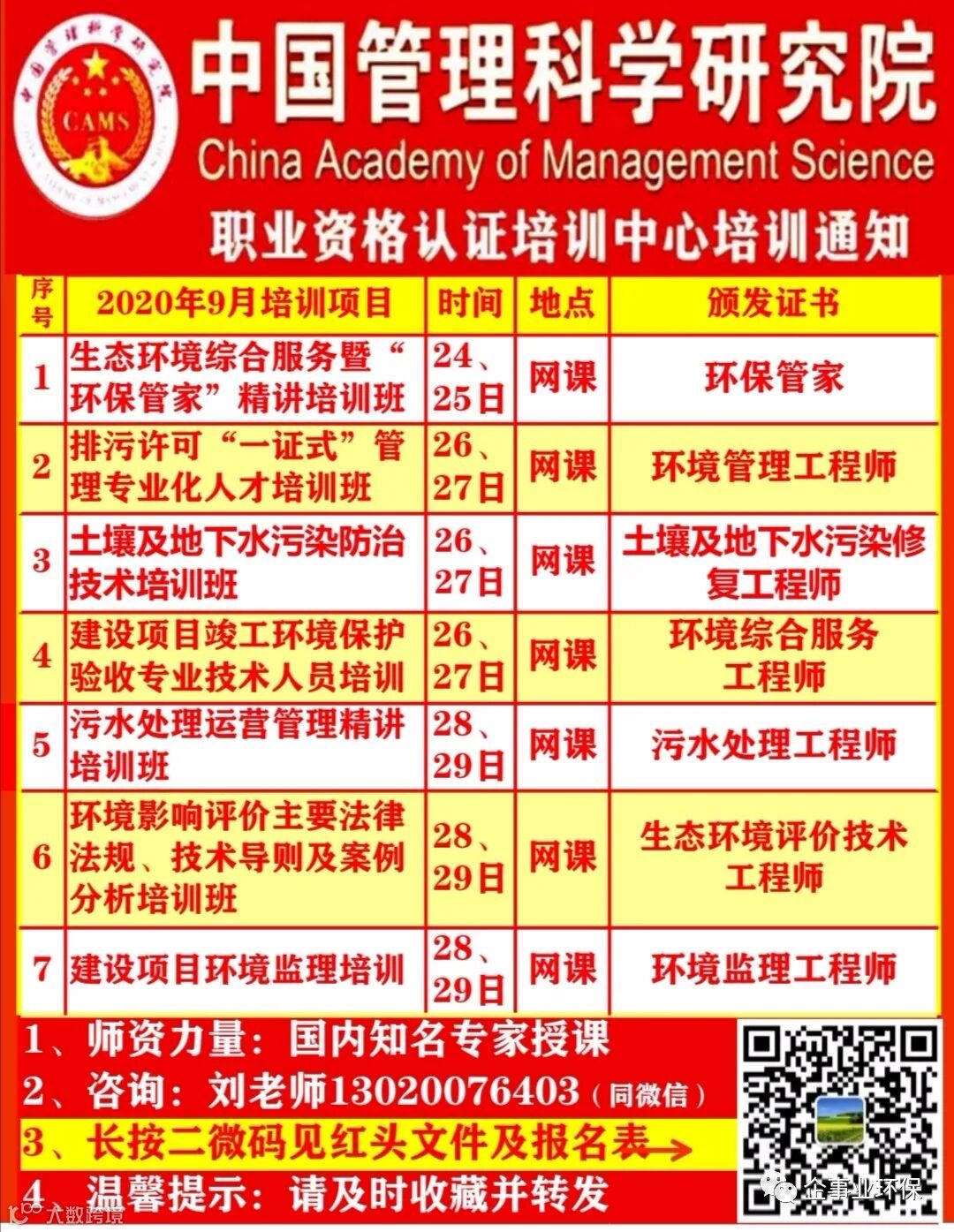 附红头文件2:排污许可”一证式“管理专业化人才培训暨环境管理工程师培训班的通知